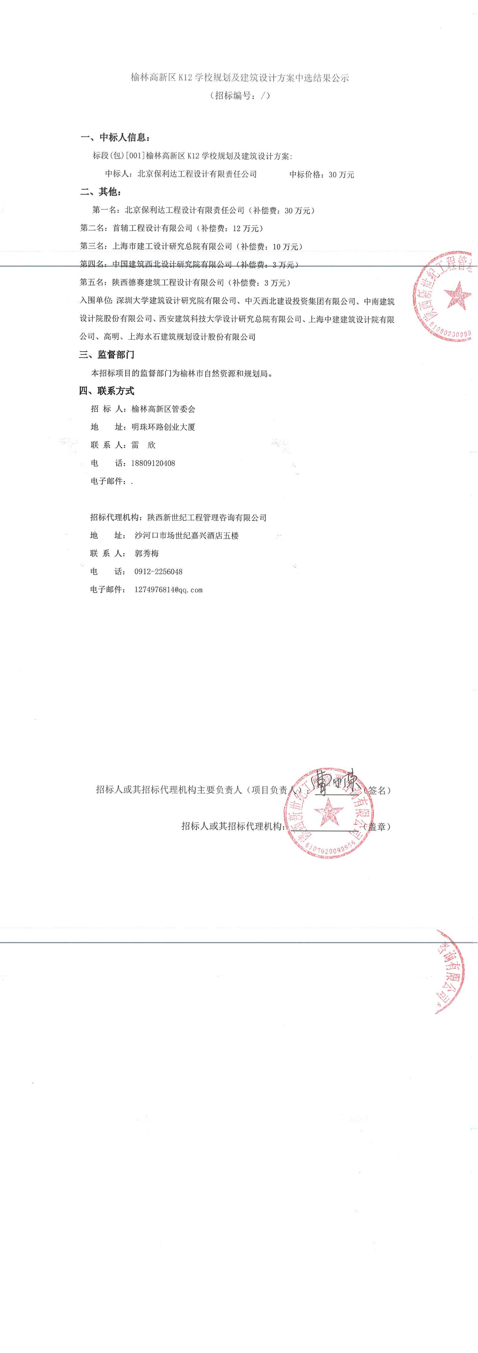 榆林高新区K12学校规划及建筑设计方案中选结果公告